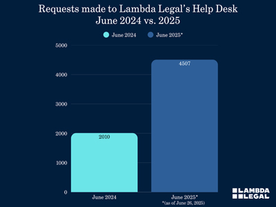 "Our communities are under attack-from legislatures to courtrooms to classrooms-fueled by the Trump Administration's hateful agenda against LGBTQ+ people, particularly trans and nonbinary people," said Lambda Legal CEO Kevin Jennings. "But we will not back down. Every Help Desk inquiry is a call to action-a reflection of fear, injustice, and the urgent need for resistance. That's why we're moving forward united, fearless, and unstoppable in our fight to protect our community-by expanding our legal team, mobilizing supporters, and challenging discrimination in courts."