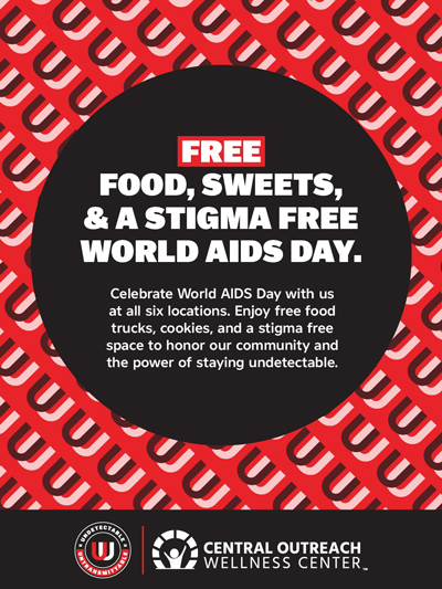 This World AIDS Day, Monday, December 1, 2025, stop by your local Central Outreach Wellness Center for free food, sweets, and a stigma-free space to celebrate our community and honor World AIDS Day.