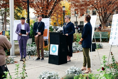 From left to right: Salt Lake City Councilmembers Alejandro "Ale" Puy, Chris Wharton; Salt Lake City Mayor Erin Mendenhall; HRC Sr. Director of Legal Policy Cathryn Oakley