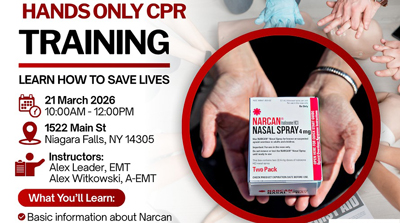 Mar 21 (Sat) - Narcan / Harm Reduction & Hands Only CPR Training (Niagara Pride, 1522 Main St, Niagara Falls, NY 14305) 10 AM - 12 PM. Phone: (716) 298-7656. Email: info@NiagaraPride.org. Browse to https://www.niagarapride.org/.